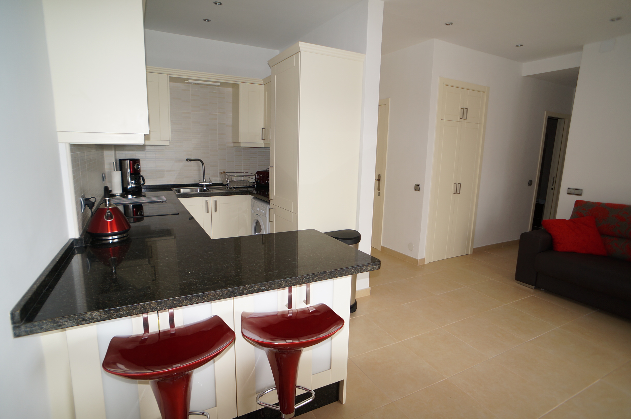 Skol apartments Marbella – photo gallery Skol 811A. Here you will find a full gallery of Skol apartments Marbella – apartment 811A. This shows up-to-date photos of the lounge, dining area, modern fitted kitchen with all appliances, including an induction hob, electric fan oven, large and  spacious upright fitted fridge / freezer.  The bedroom is shown set up as a super king-size bed or as two single beds. The modern  bathroom is fully tiled. The balcony photos show the stunning beach and sea views from this apartment.